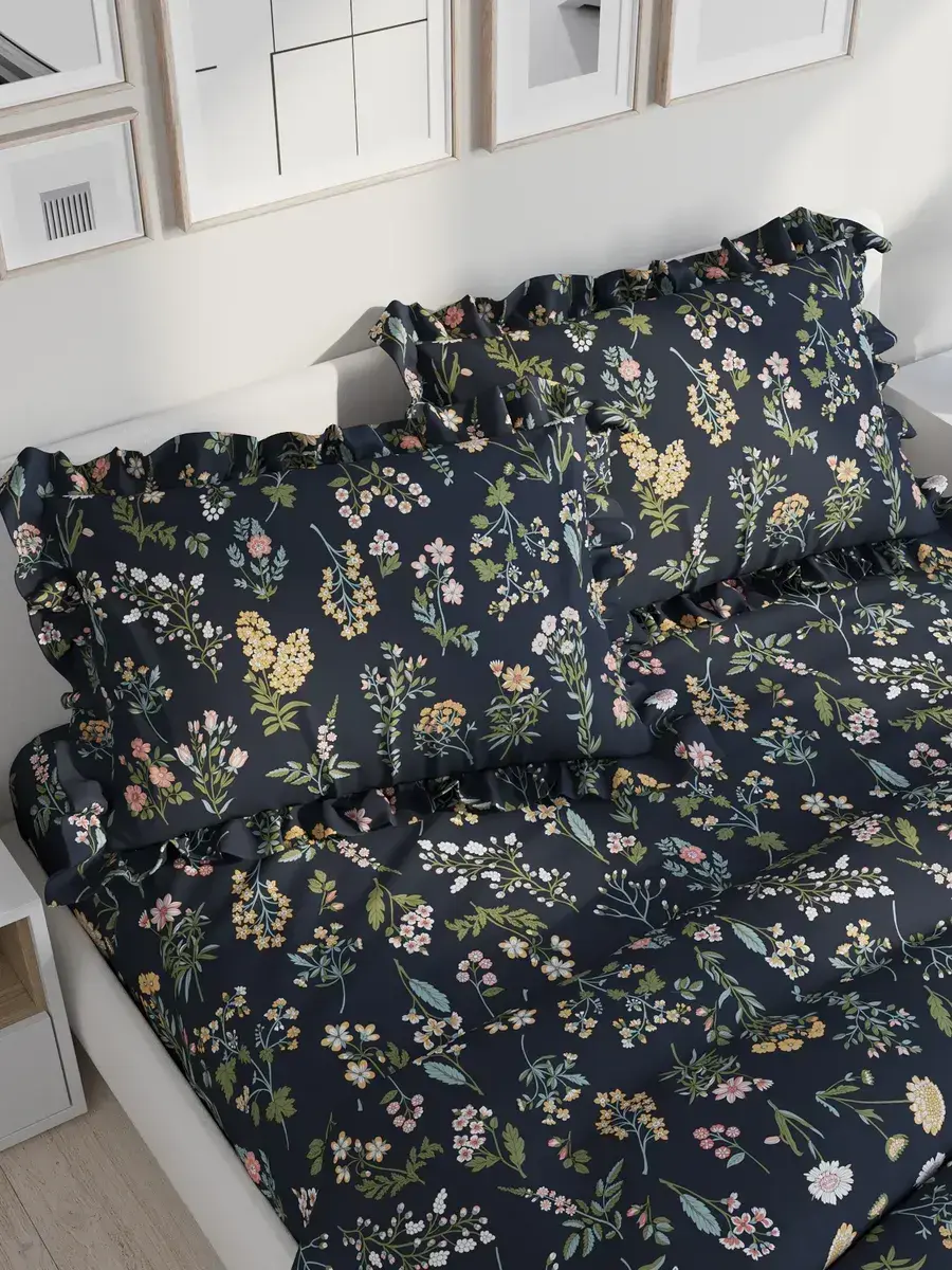 Декоративная наволочка с рюшами, оборками "Ботаника" 40х60 см, 1 шт, без молнии